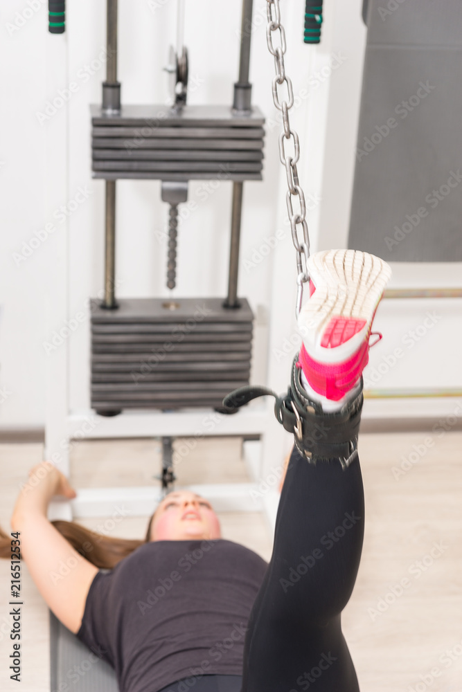 Young Woman Training Legs Cable Crossover Machine While Lying Mat Stock Photo By C Vaicheslav 207176440